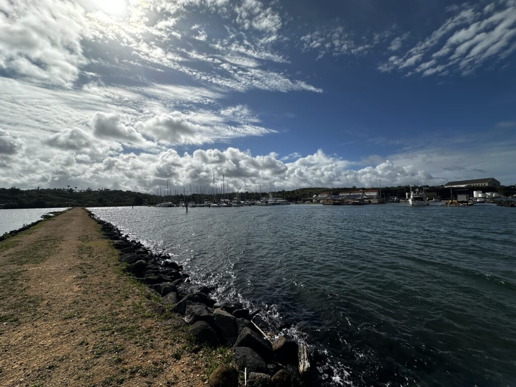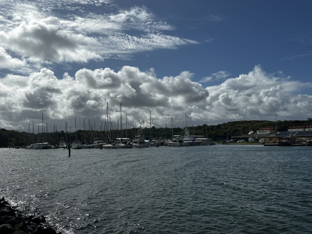 The DLNR-DBOR office at the Nawiliwili Small Boat Harbor in Lihue was very pleasant to work with. We called a few days before leaving Oahu and they said they had room for us. Since we had checked-in in Hilo, they were able to see our paperwork. The only thing they needed was for us to update our insurance addendum for DLNR to include the address for the office in Lihue. I’m not sure why since it is a state-wide department but we’ve heard of this. Once they had all that stuff, they emailed us our slip assignment with a marina map showing our slip. Upon arrival we checked in with the marina and they issued our gate key and mooring permit. The marina has fixed docks, water and power. There was quite a surge in the marina which we were told was normal. We were able to rent a car online and pick it up remotely from a parking lot within walking distance of the marina. There is a small area with restaurants and bars within walking distance of the marina but the downtown is area is quite far to walk. Within the town of Lihue there is a Walmart, Target, Home Depot, Costco and various auto parts stores. As well as good restaurants, laundry, and Kauai Brewing.