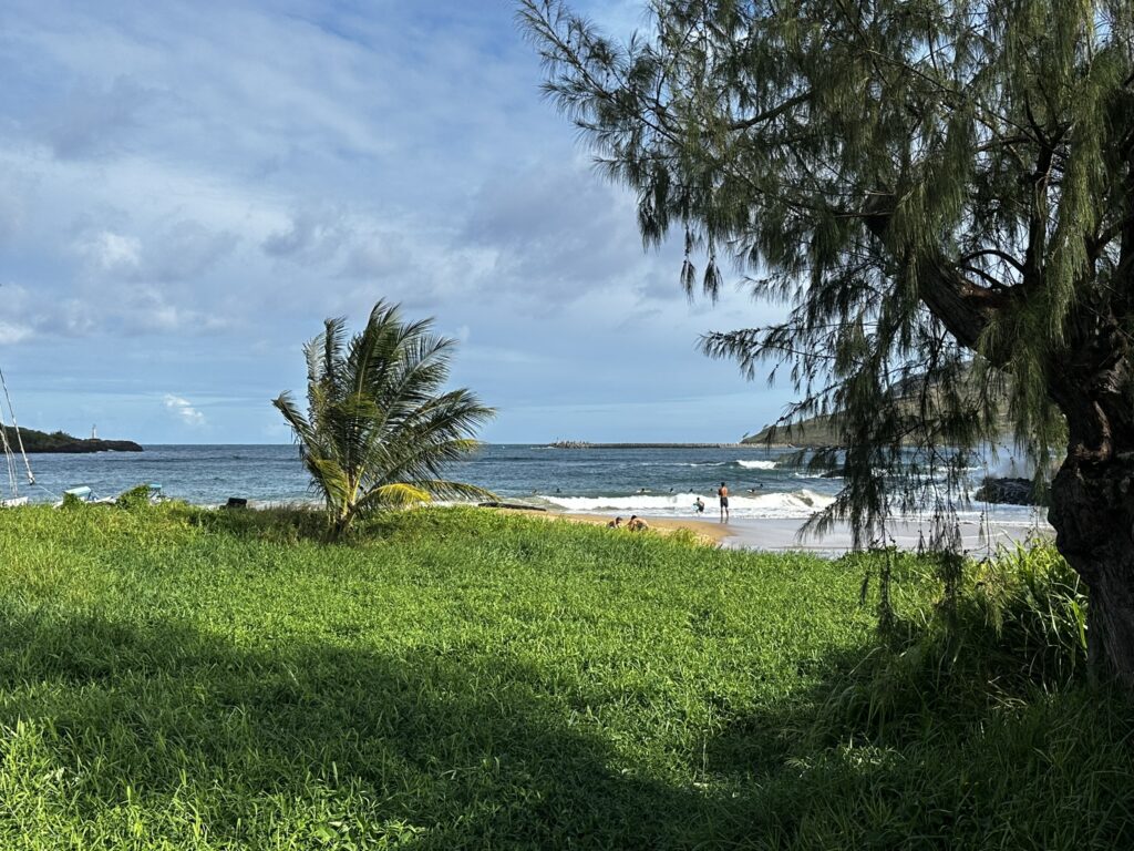 We were told at the office we needed an anchoring permit for Hanalei Bay. I’m not sure if you really do to stay for <72 hours but we didn’t argue and got the permit. As it was, no-one ever asked to see it. Hanalei Bay is great anchorage, right off the beach. You can take the dinghy in through a well marked channel into the river and tie/lock it to a palm tree by the canoe clubs and the boat launch. From there it is about a one mile walk into town.