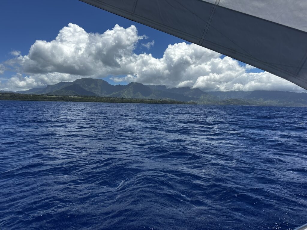 We initially motored after leaving Oahu but soon got into the wind and sailed the rest of the way across the Kauai Channel. Towards the end we encountered some squalls and rough seas. Our first stop in Kauai was at Nawiliwili Small Boat Harbor in Lihue. Entering the harbor we were surrounded by breaking waves coming over the breakwall. After talking to some of the charter boat captains later it turns out it was just an average day in Lihue. We got a slip in the marina along with Ka’Sala and explored the island for a few days We went hiking in Waimea Canyon, drove to the north side of the island, enjoyed a beach day in Hanalei, and checked out every brewery on the island. It was a blast.