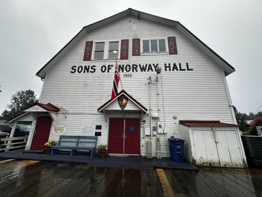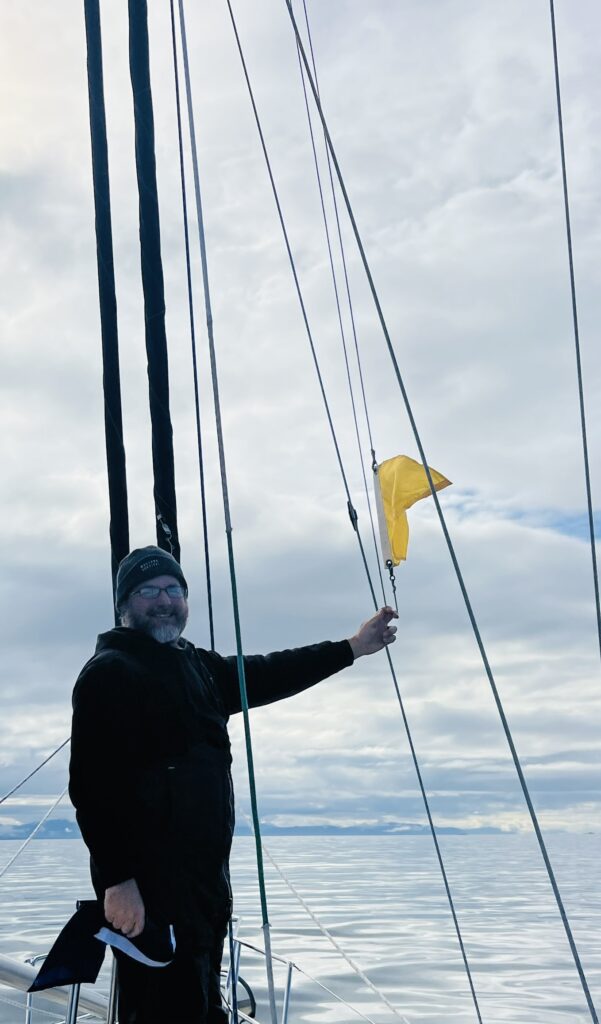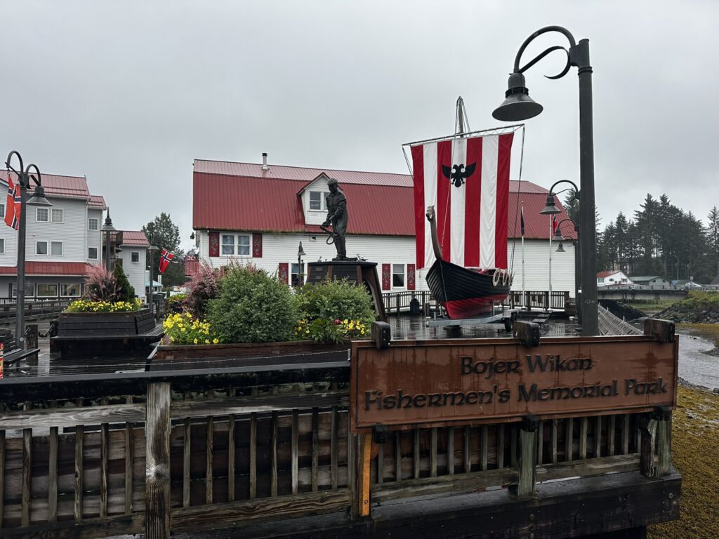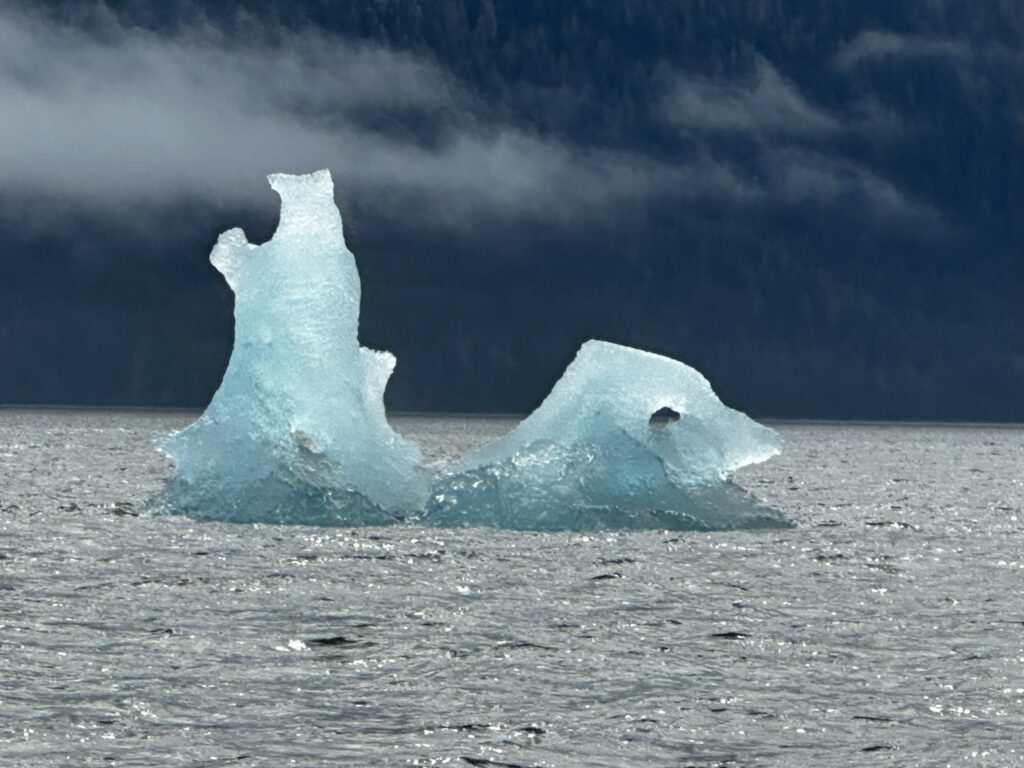 As the storm cleared, we headed to Petersburg, AK. We left Portage Bay early to catch the slack tide at the exit of the bay. Along the way we had time to kill waiting for the currents in Wrangell Narrows to slow, so we took the time for a leisurely day sail. We encountered our first icebergs of the trip that had drifted down from the Le Conte glacier. We then headed for our slip in the Petersburg marina. With a strong current running, getting into the slip was a bit challenging but we managed. Petersburg is a small, working town with strong Norwegian heritage. We enjoyed walking around the town, restocked our groceries, did laundry, and enjoyed pizza and beer with the crew of SV Kairos.