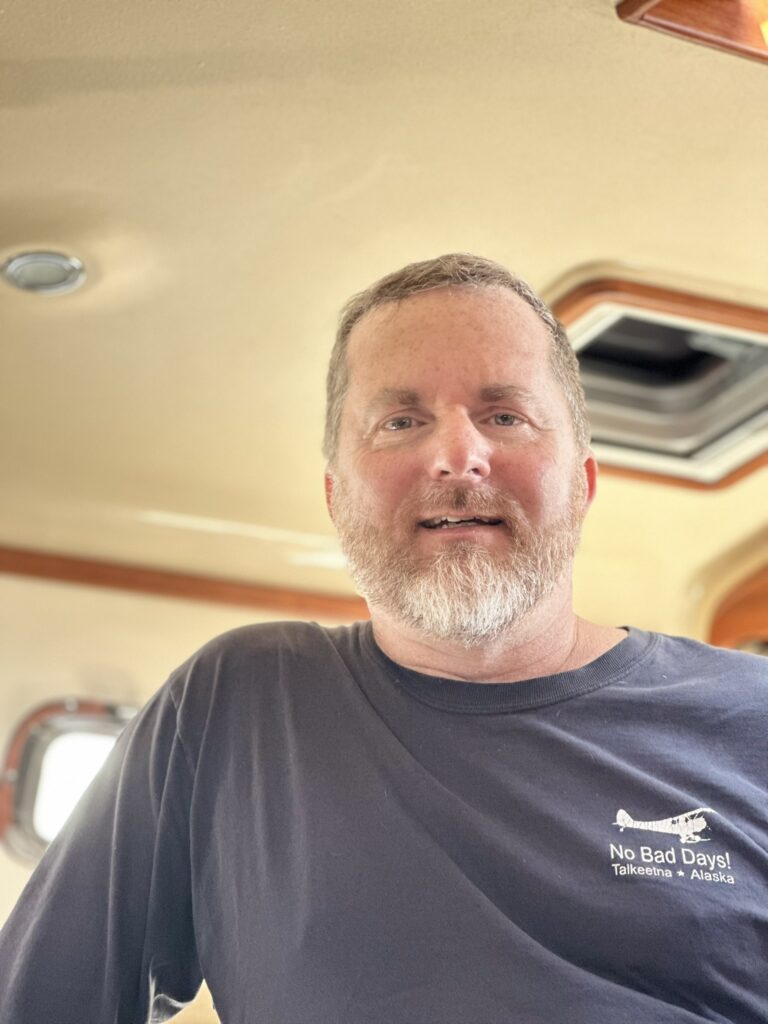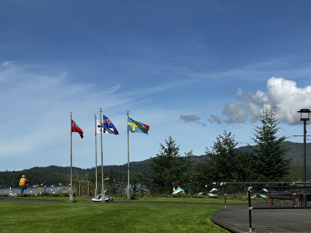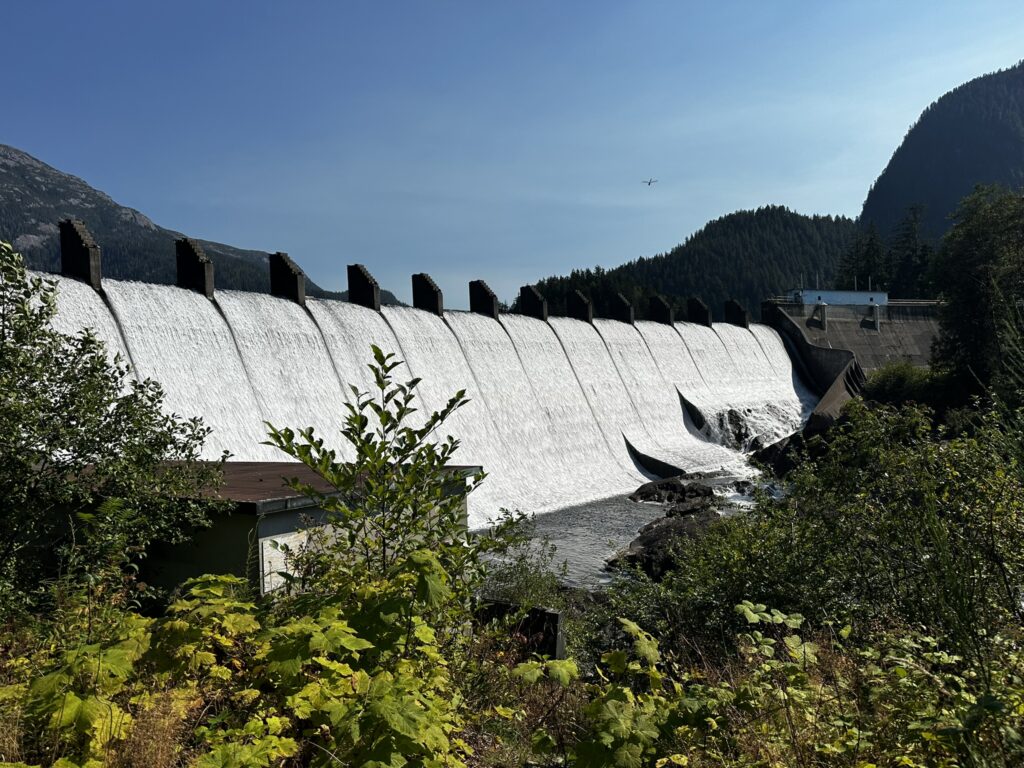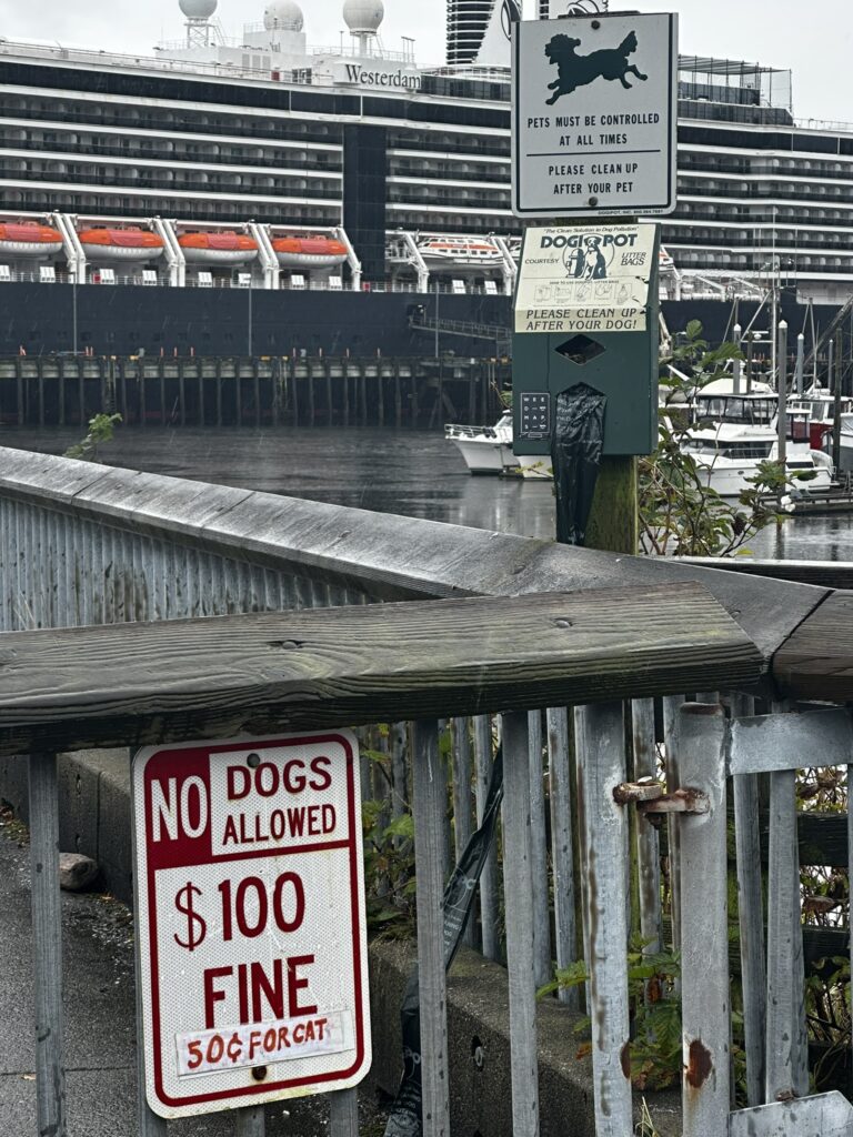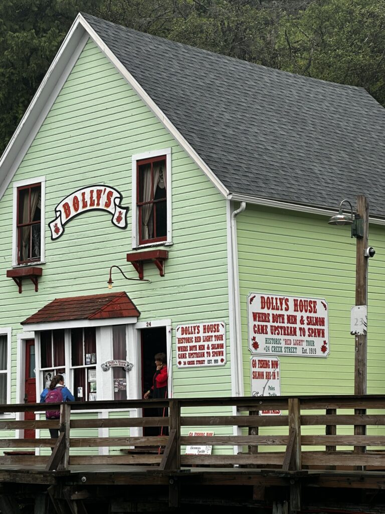 We had stopped in Ketchikan years ago on a commercial Alaskan cruise and were looking forward to exploring it from our own boat, at our own pace. There are several marinas in Ketchikan and we chose to stay at the Thomas Basin Marina which is in downtown, near where the cruise ships tie up. In fact, with about 15 knots of wind on our beam, we had to pass around the front a Holland America ship to enter our marina. This turned out to be a great location. Although somewhat busy during the day when multiple cruise ships are in, the last one leaves around 6:30 pm and the town is quiet after that. There are no amenities at that marina, however, the Ketchikan Yacht Club is in the same location and offers the use of their facilities for a small daily fee. So we had access to showers, laundry, a kitchen, and a place to hang out off the boat. They also have slips for transient boats that we will certainly take advantage of on our way back north. We had fun walking around town. Our highlights were the Salmon Walk (a two mile walk along the river with salmon swimming upstream), the Bawden Street Brewing Co., Baleen Brewing, The Bush Pilot’s Lounge (excellent food and a great view) and the 108 Tap House and Burger Bar (amazing burgers). There are some great hikes in the area but unfortunately we were fighting colds while there and didn’t do any this time around. The bus system is easy to use and made grocery shopping easy.