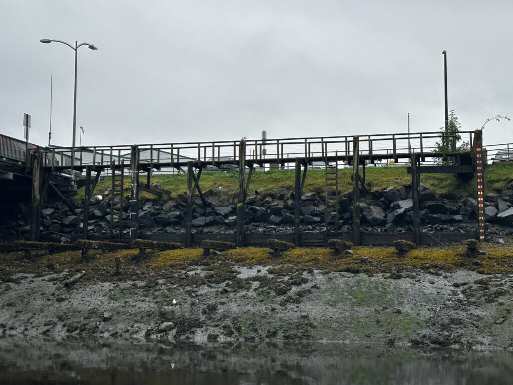 The tides in Alaska have a huge range between high and low tide, sometimes as much as 20 feet or more. Using this to their advantage, the locals use grids to work on the bottom of their boats. At high tide you pull your boat onto the grid and secure it. Then when the water recedes at low tide, the boat is essentially out of the water and any work on the bottom can be completed, until high tide floats it again about six hours later.