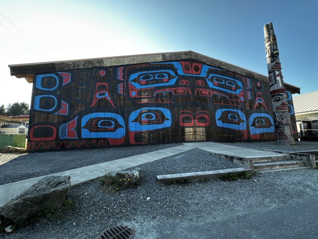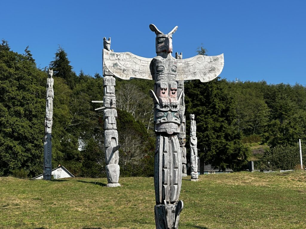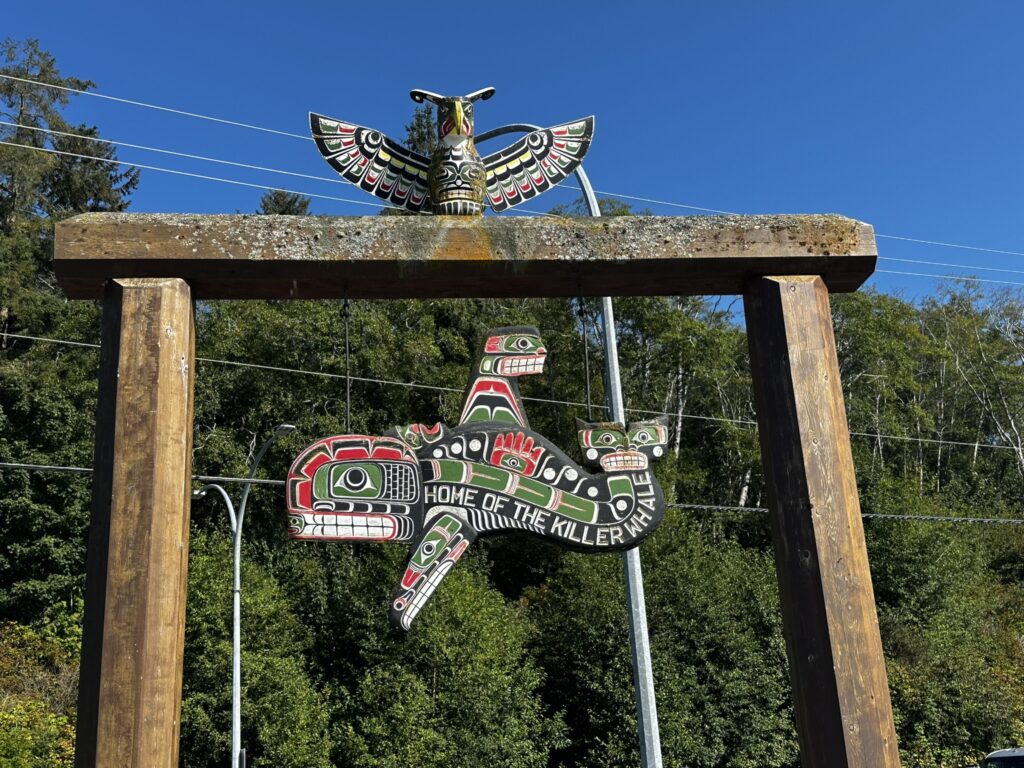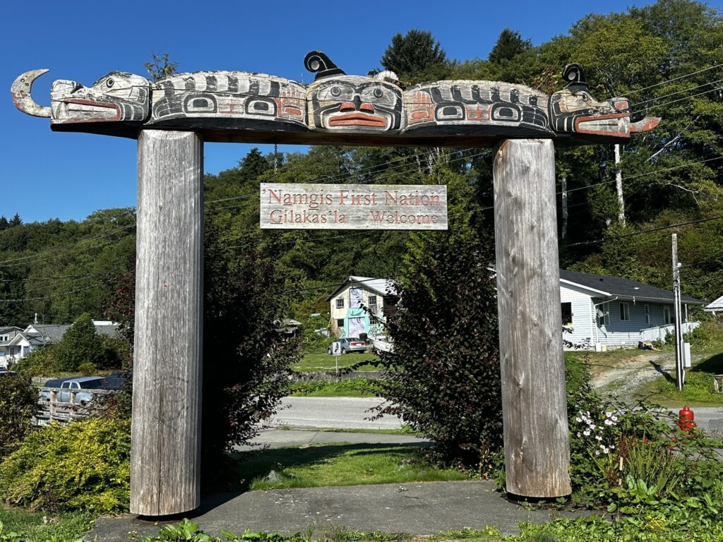 After a nice stay in Ocean Falls, we left the dock and pointed Tasi’s bow southward. We motored to Fury Cove where we anchored overnight before our leg around Cape Caution. Getting around this cape exposes one to the open ocean and complex tidal currents and fog. It is known to be quite challenging and downright dangerous in the wrong conditions. We lucked out and despite some fog, we had flat, calm seas the entire way to our anchorage in Blunden Harbor. The next day we headed to the village of Alert Bay where we anchored for a night. We took the dinghy to shore and walked around this First Nations village where we had good meal and some beer at the Nimpkish Hotel restaurant. It had a nice view overlooking the water and good seafood curry.
